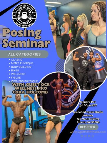 Join us for a posing workshop. Let us help you to showcase your strengths and stand out on stage. All categories are welcome. Email us your name and category to register.